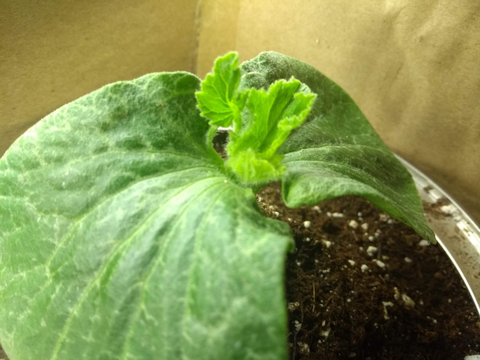 Was quite happy to see the first true leaves forming on the seedlings, but upon closer inspection it looks like the 1543 has a problem. Four leaves are growing at the same time. Not sure what this is, but I will let it grow and see what it does.