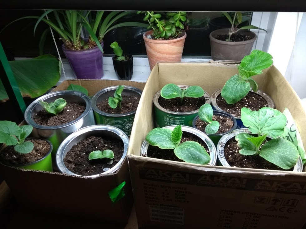 If I use the coffee cans for pots again, cut off the bottom and put the rim and lid on the bottom. I thought I could slide everything out the bottom come planting time, but the weather didn't let me get them outside soon enough. They were too big.
