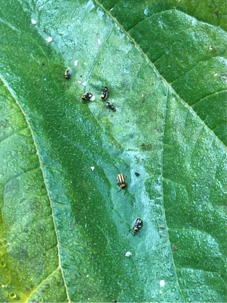 About 50 cucumber beetles were dead on the leaves this morning on the plants. For some reason they like the 2051 better. Mild Winter is probably why there is so many.
