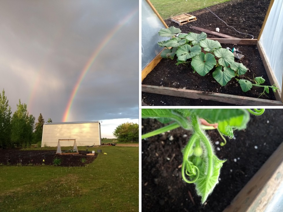 A pot of gold at the end of the rainbow? Nope! Even better! The first baby pumpkin showed up today!! Off with the hot house tomorrow as well. We are maxed out corner to corner and nights are getting warmer.