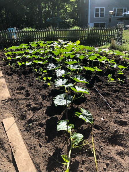 The 1989 Daletas is just a gorgeous plant. Shown here. The main vine is just flying and secondary�s coming out well except for two stunted ones. 2 pumpkins can now be seen. First one is at 22.5 ft with 20 secondary�s behind. Second will be at around 25ft with 25 secondary�s behind. First will open Sunday or Monday. Second late next week. I�m leaning towards second. 2051 on the other hand is a bit slower and the pumpkin will likely be at 25 ft or so. One in the tip at 21 or so but a few stunted secondary�s behind so would like to get more growth on new secondary�s. Feeling good so far!