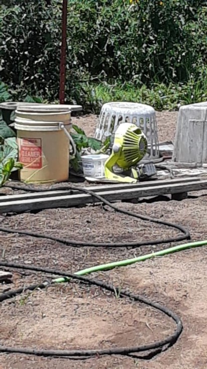 Fan with small container of ice - trying to pollinate - temps over 90's all week.