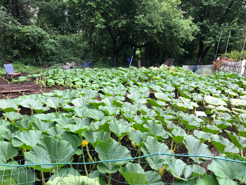 Picture of the patch. Plants are definitely still in plant mode it seems. Vines are still growing a foot a day