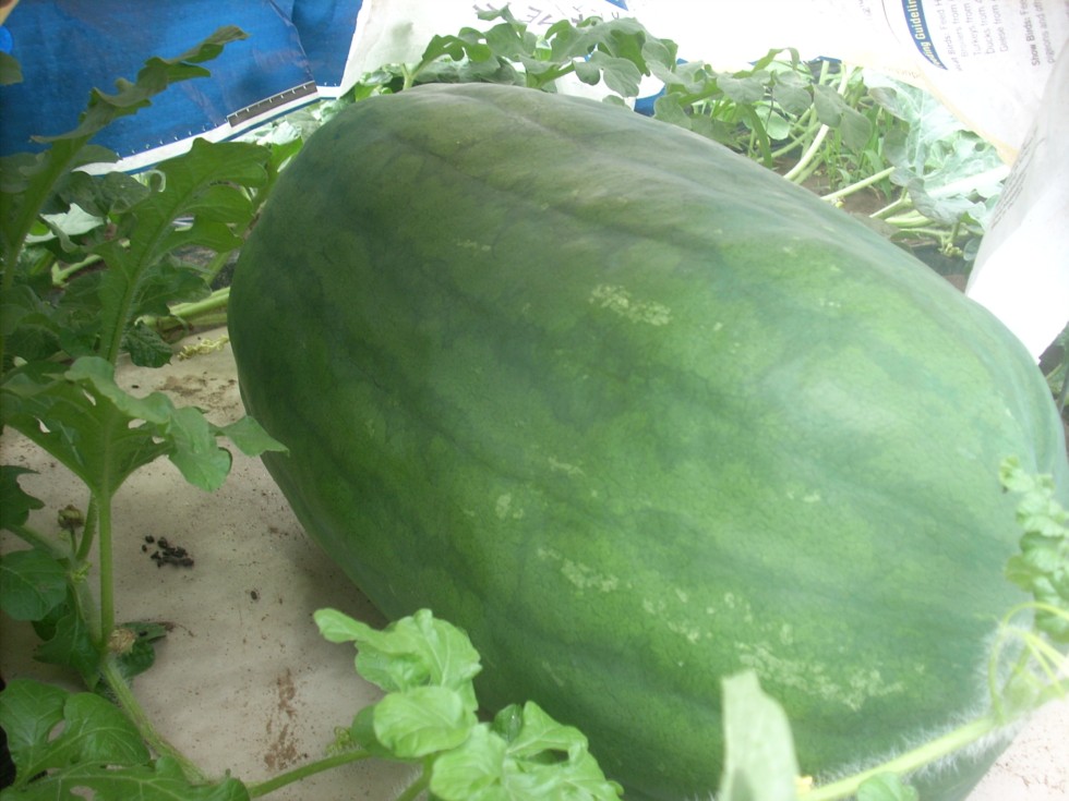 My only melon to date. It is on the Unknown CC x JBD on the BG rootstock. It set early, so I kept it. I didn't particularly like the set because it had an uneven blossom end. Unlike AG's the melon's seem to grow out of that ugliness to a certain point, and this melon already looks a lot better.