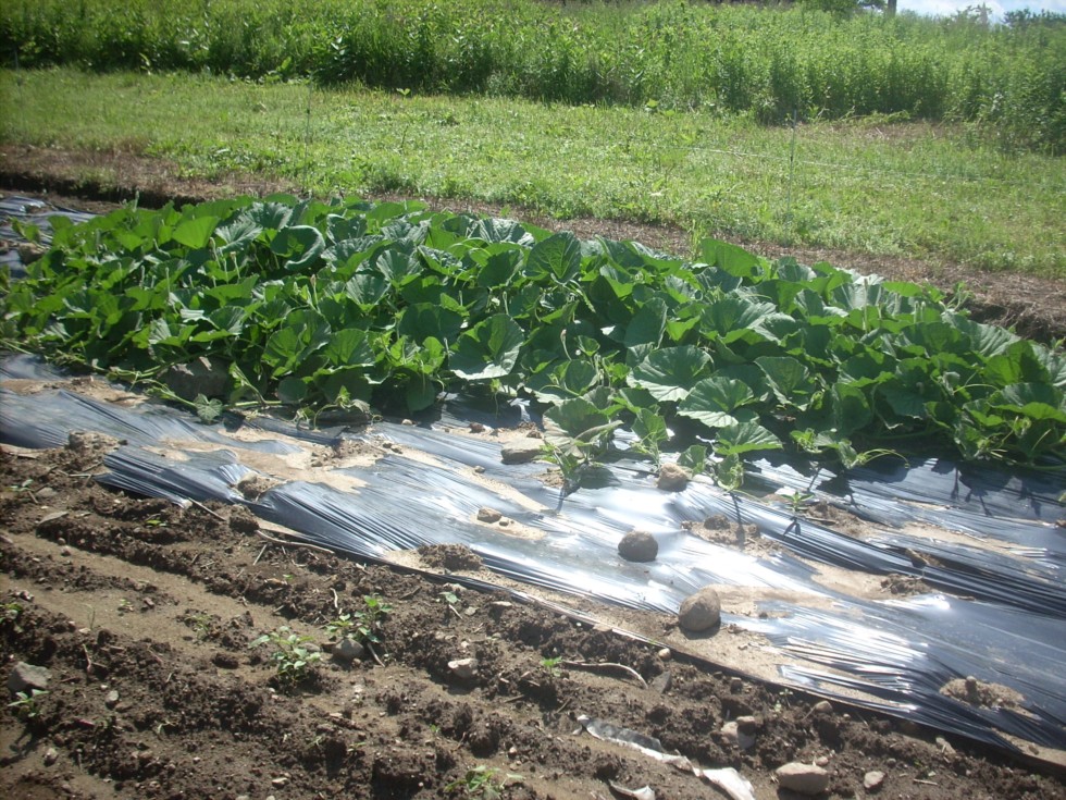 263 Ciesielski, Bushel Gourd. I am trying a technique with the BG's that is similar to what I use with my melons. Long, skinny plants which are easy to cull. No sets yet. Whatever pollinates them hasn't shown up here yet. I don't want any sets yet either, it is way to early. When BG's are young they weigh like rocks. Hitting that perfect harvest date when the fruit have just stopped growing and haven't lost weigh yet is key to maximize weight. For some reason this plant seems big to me for such an early date, I will have to look back at my past diaries and see if it is.