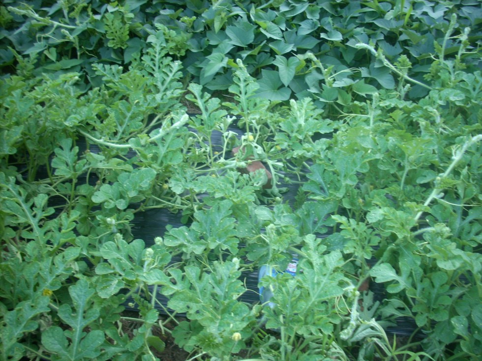 I am not sure if you can see the damage but a warning for new growers. Don't always assume the worst when you see vines wilting. Follow the wilted vines back and look to see if the mice have bitten through them. It happens every year to me. This damage occurred on the Harvest moon as I can see yellow spots on the leaves.