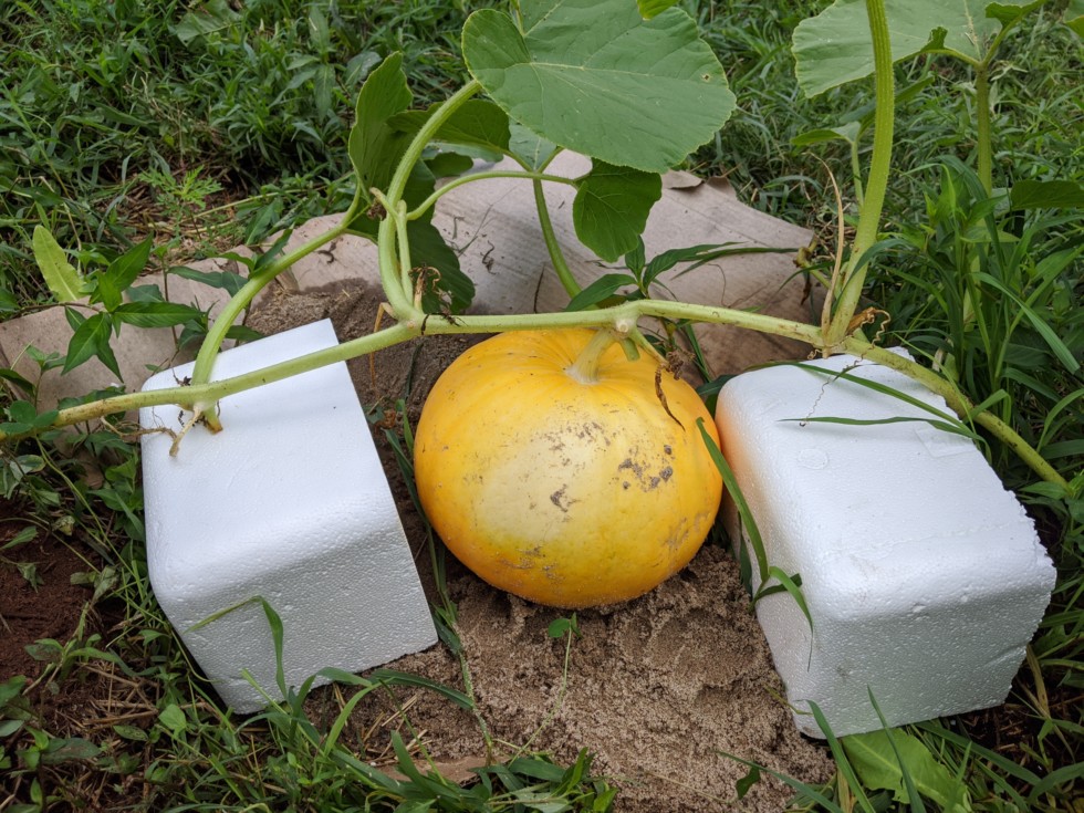 A plant I'd given up on in the weeds put on a fruit, giving it a shot growing blossom down to see if I can get a nice shape