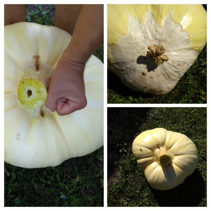 Noticed that a couple white spots formed on the 1126 on Aug 1st. Today she had to come off the vine as it was clear there would be no chance in saving my odd shaped pumpkin. Not very good luck on my biggest plant, but as Bill Foss would say, "it is what it is."