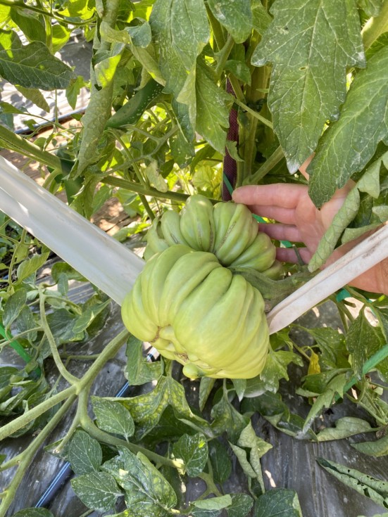 Here we have a 5.08 LaRue Domingo. I like it�s shape. There is another tomato at the bottom that fuses it together. It�s middle age and still has a few weeks left.