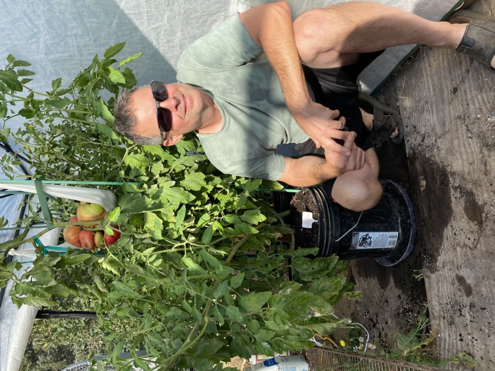 One last pose with the bucket bruiser before I cut her loose. I went for broke and flooded the soil and drip pan to swell it up. It worked. There were cracks in the skin. No leaking of course.
