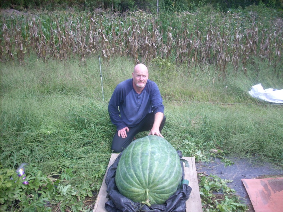 Another picture of my "big lumpy" melon. It's taping 202" I wonder what it will weigh? Don't get too excited, The scale can be your friend or enemy. Either way it should still be a personal best for me. The question is by how much.
