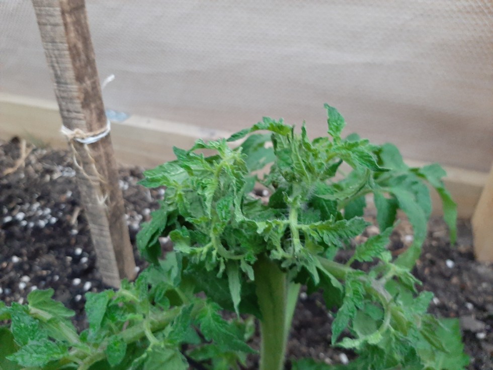 Do tomato plants curl up before a storm or sudden weather change? All of mine decided to curl up around and cover up their flowers today.