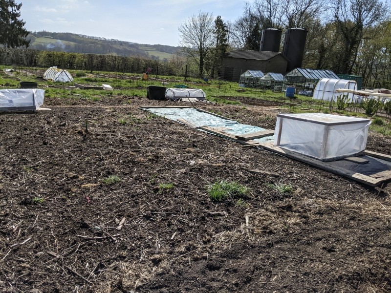 It might look big but it is less than 1000 sq. ft. for the main plant. The two little hoop houses are where I have planted the extras to possibly serve as pollinators.