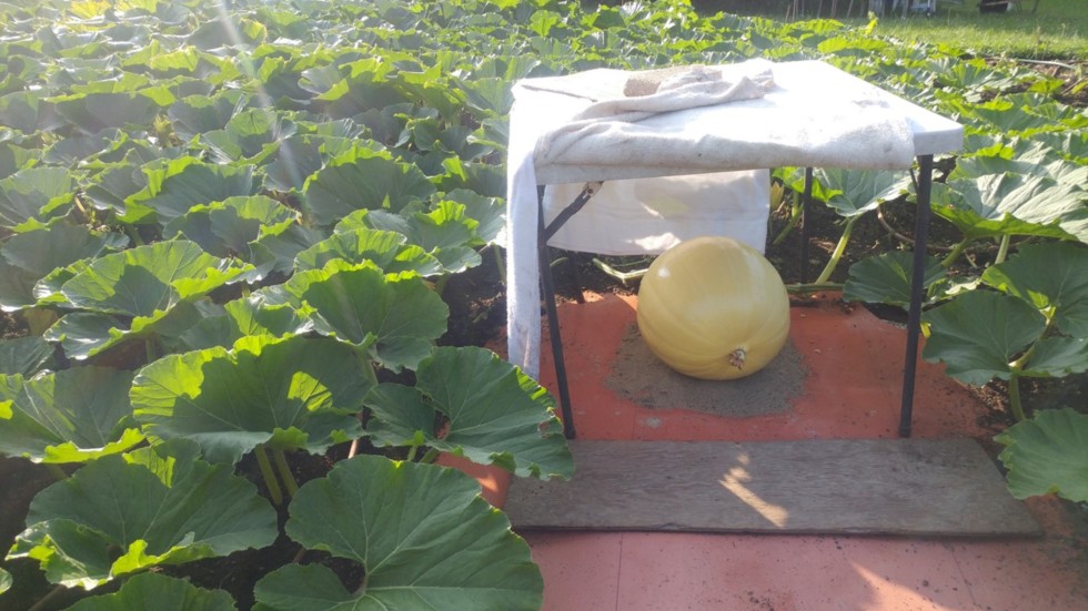 Decided to keep this pumpkin 17 Ft out on the main, Its a 2552 Mendi crossed with the 2593.7 Paton. Pollinated June 16th so today its 18 DAP. Culled the larger one which was set at 14 ft, to get more side vines befors the pumpkin..