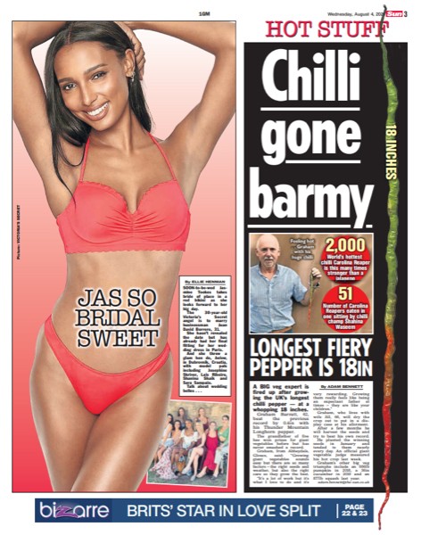 The 45.7 CM Long Chilli made the nationals. Page 3 of the Sun yesterday. Now who would have put money on that one??