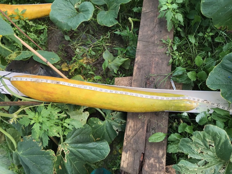 37� Cucumber. Probably won�t grow any more. A little dink in the tip, so I dusted with yellow sulphur.
