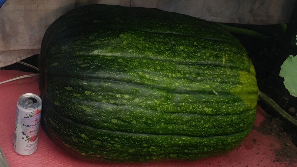 Shown is the 186-3x self Nesbitt Field Pumpkin In 2 days it grew from 13 inches long to 18 inches long. Its growing too fast. Not good, but still has not split yet.