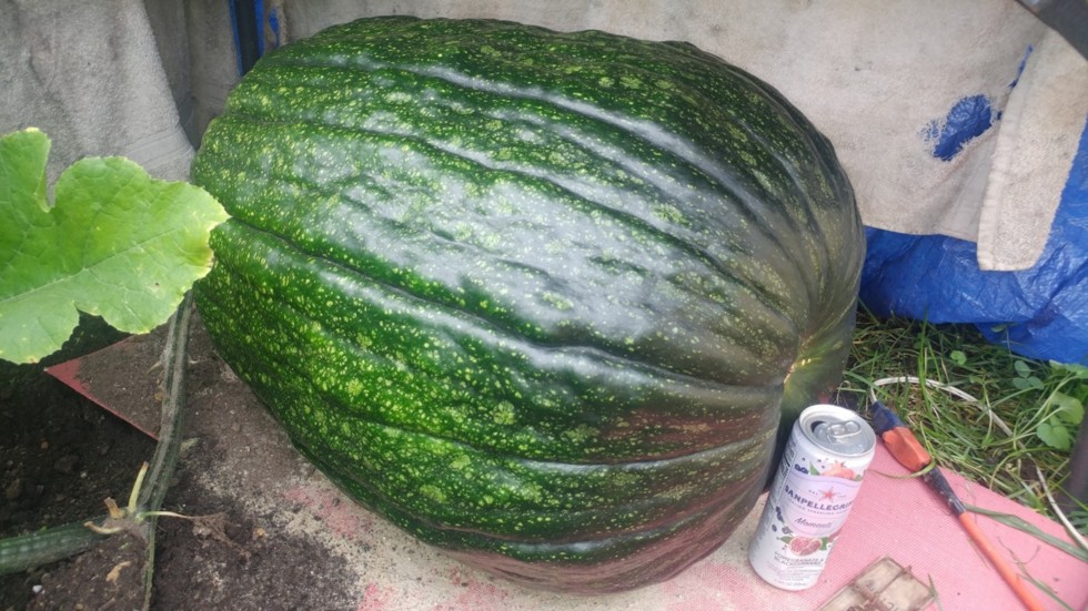 My 186-3 Field Pumpkin was selfed on Aug 9th. Shown at 22DAP. Its set at 30 ft out on a Side Vine. OTT is 160. I am giving it a "Knock over the can" test, to see if it can beat the 10 days required for the Bushel Gourd to complete the same task. lol