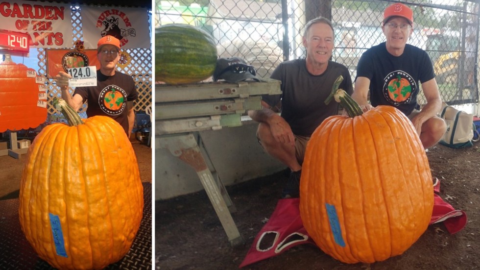 Durham has a fantastic country Fair and GPC Weigh-off. We weighed in with a 124 pound FIELD PUMPKIN. Had a great time. Shown with my cousin Jim Gavin from CT.