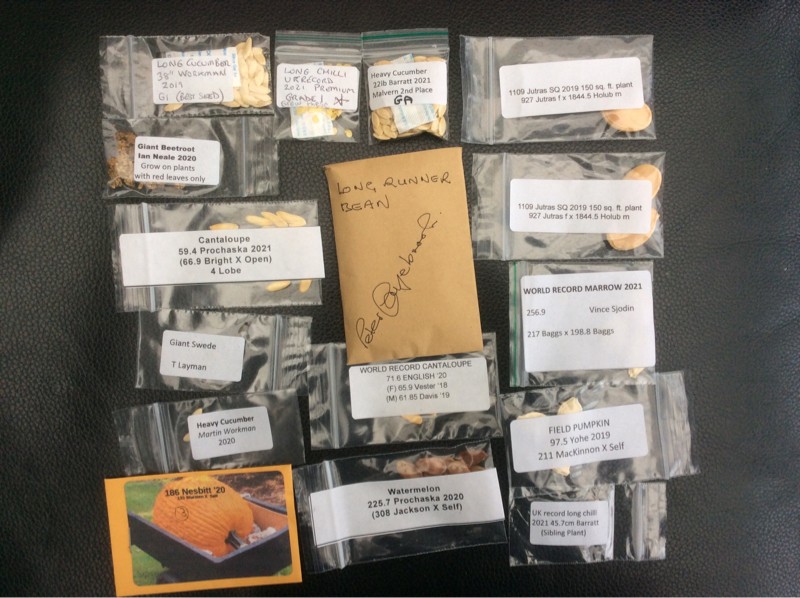 Really excited with this year�s line-up so far with some of the best seed in the world. I have 3 x World Record Marrows, 3 x 1109 Jutras Squash, WR Cantaloupes as well as Tony Prochaska monsters, 38� Cucumbers, UK Record Long Chillis, Ian Neale Beetroot, Peter Glazebrook Runner Beans. 186 Nesbitt and Yohe Field Pumpkins. I�m not yet finished with the line-up, but it�s a great start. I love this time of year and getting my seed line-up together.