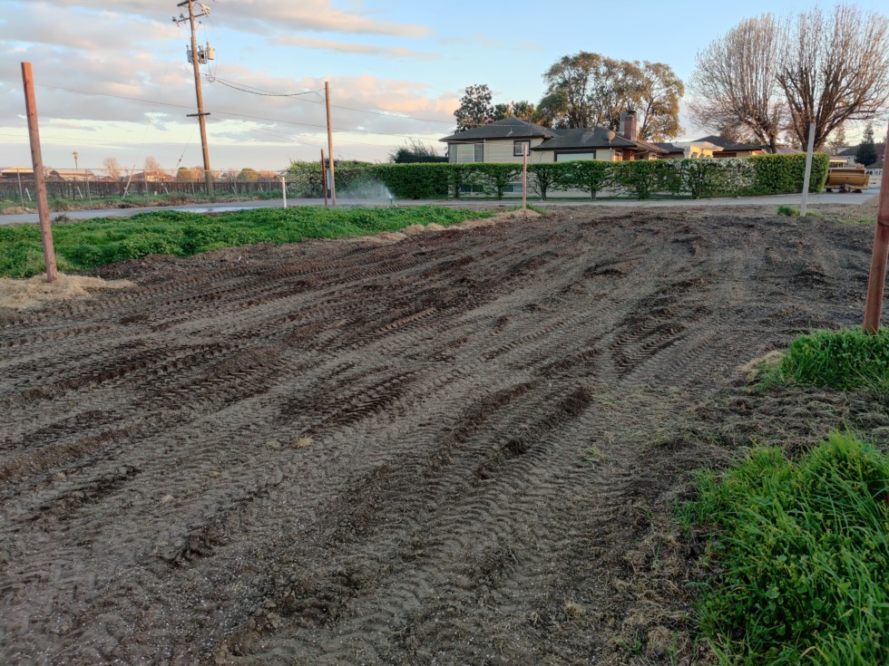 Spread some iron, 3lb borax, ammonium sulfate to help break down the carbon in the soil fast. Soil is tamped down a bit, which will make sowing cover crop tomorrow easier and more uniform. I'll probably pick up some gypsum too since my calcium is low