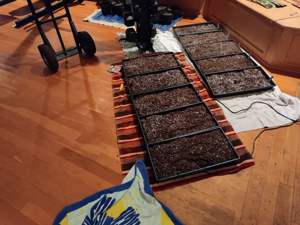 10 flats, peppers, tomatoes, basil and oregano Each flat will produce about 100-200 plants As well as about 20 strawberries in the pots in the background