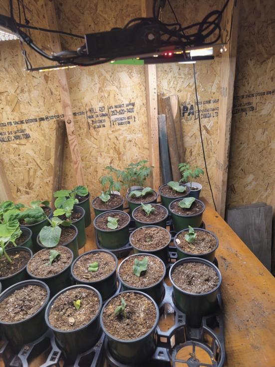 Seedlings started 4/12, 1 week old today. You can see a couple of the burnt ones to the side. I have my heater on a timer now so it only comes on from dusk to dawn, and I'm venting my shed because it gets hotter in here than I expected. I'm pretty happy with how these ones are turning out, they're nice and stocky sitting under the grow lights at about 500ppfd brightness, which is about half the brightness of daylight. I'll probably get these planted tomorrow, the earlier the better.