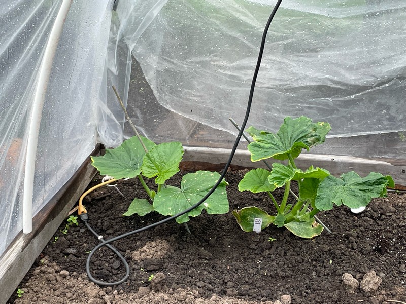 This hoop is in the old garden and the plants seem to be challenged here. The two 1552�s don�t seem happy, so I transplanted a 536 Young (1469 Young x 1215 Young) which grew there last year to see how it does.