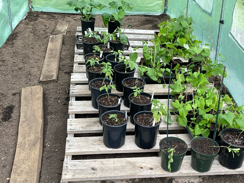 The greenhouse is getting crowded for a week or more. Happy to see the burnt tomatoes coming back strong. Will plant them around Memorial Day.