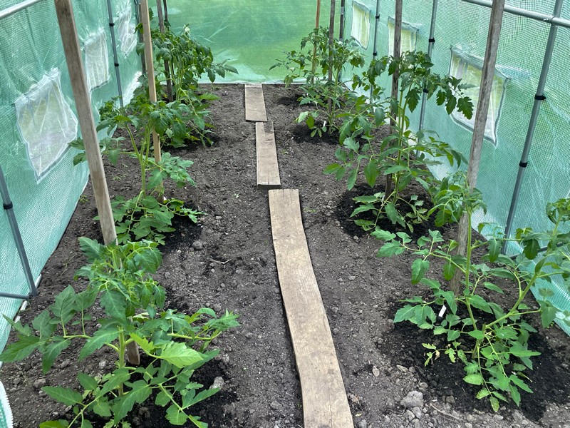 The giant tomato house is starting to grow aggressively and we have a couple of mega blooms showing. These are a blast to grow and actually taste good as well.