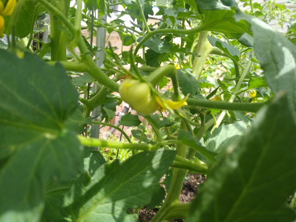 Tomato on the Dan S cross seed. It is somewhat normal shaped so far.