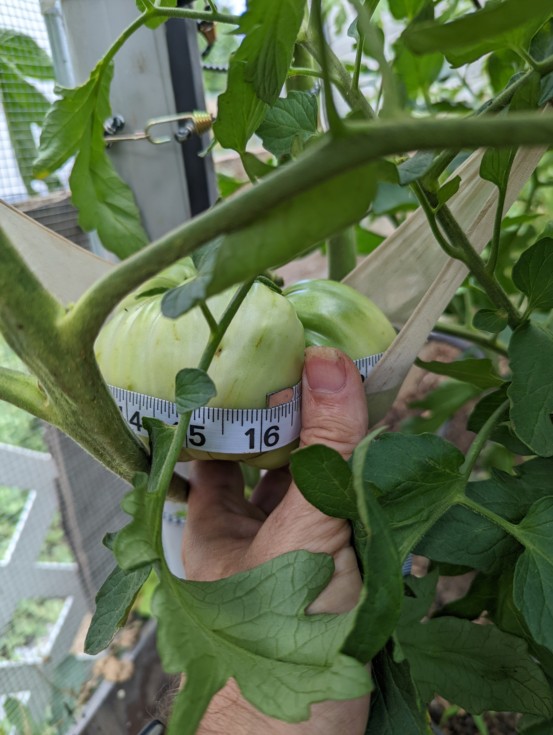 Old man mater on the strickler plant. I found 3 horn worms that had taken up residents while I was gone on vacation. One was tiny the other 2 ate a good section of leaves off the Lyons plant. Both looked almost full grown. Sneaky sneaky.