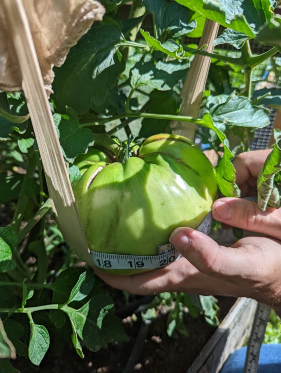 The big single might be flashing color also (top right of fruit) It is not soft yet so hopefully I have a few more days. Soooo close to 20". It's probably not going to make the state record but I have a few more chances.