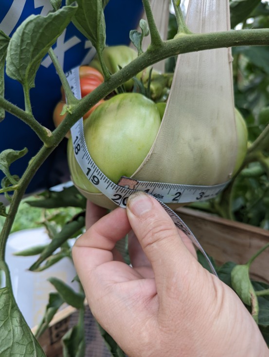 The other tomato on the Dan S. plant. It gained a 1/4" so I'll let it grow as long as I can.