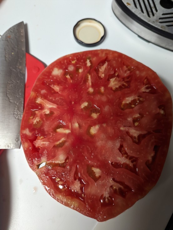 The big single has way more seeds and was not as dense as the old man tomato. Very interesting. Are singles less dense than fused tomatoes? Are tomatoes with less seeds more dense (heavy)?