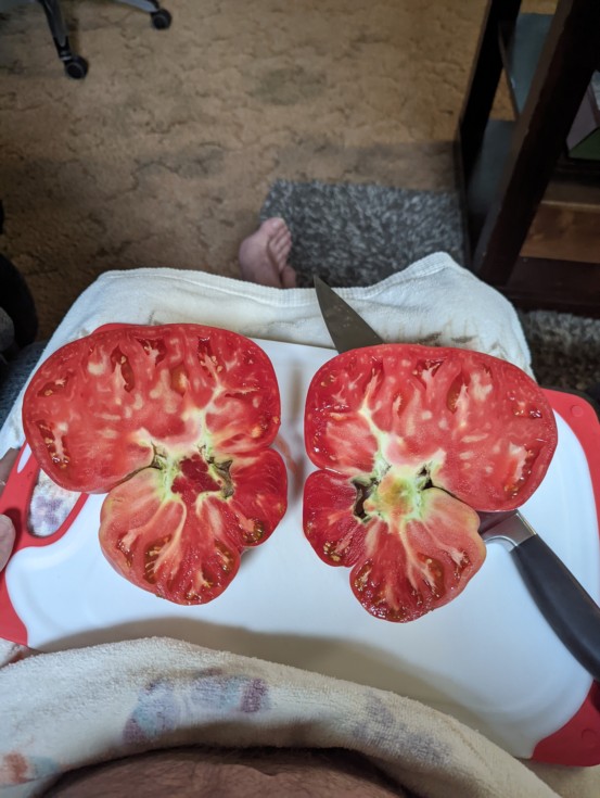 Inside of the 2.66 Luers. It is much more dense than the big single (3.11 Luers). It is one of the very first I hand pollinated and it seems to have a lot more seeds than the last two. Learning learning learning......must fill brain with tomato knowledge.... :)