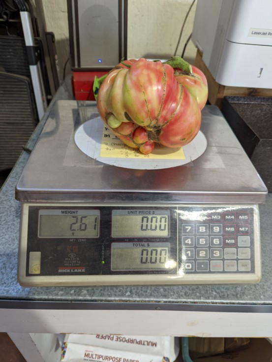 The angsty teenager tomato. I have already weighed my three for GPC. It would have to be bigger that 2.66 to record it. So unofficial official weight. 2.62 Luers off the Lyons 5.97. If anyone wants to grow seeds from an angsty obstinate tomato let me know :).