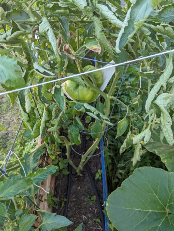The best tomato I have is the one on the extension box clone. See it all snuggled down in the leaves. The plant is the healthiest one at this point.