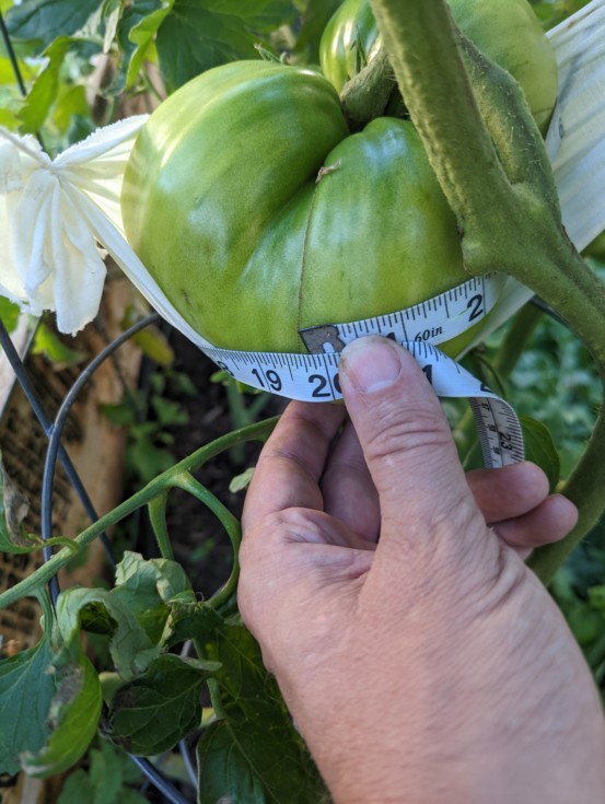 Another shot of the extension box tomato. It is still charting to hit 3.5lb by dap 40. (Sep 30). I'm hoping it stays green until oct 8 for the weighoff in Fort Collins. Fingers crossed.
