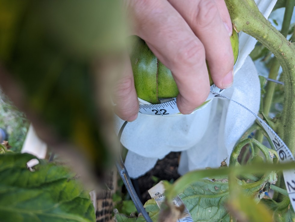 This silly tomato....it grows then it doesn't grow....I had my wife uncover it during the day because it was so wet inside the plastic. Last night when I got home from work I went to cover it back up and the tomato was cold to the touch. We will leave it covered tomorrow and see if I can squeeze out just a touch more growth before Saturdays weighoff. It is taping right at my PB. Guess we will see. It feels pretty heavy and its growth is much more compact than the 3.88. Crossing my fingers. Because of the lack of growth in the last 2 weeks the Colorado state record is probably out of reach.
