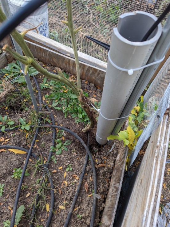This answers a LOT of questions I had earlier when I started this experiment. Will the vine just rot, is there too much sunlight to produce roots, will the roots get too hot in the pipe etc etc. The answer is: the frickin roots loved the pipe full of dirt. Now we have new questions. Will this equate to bigger tomatoes, or more nutrients for growth, if you do this right next to the tomato will it get bigger than if you don't. What happens if I use the pipe to fertilize. This is fun!!!