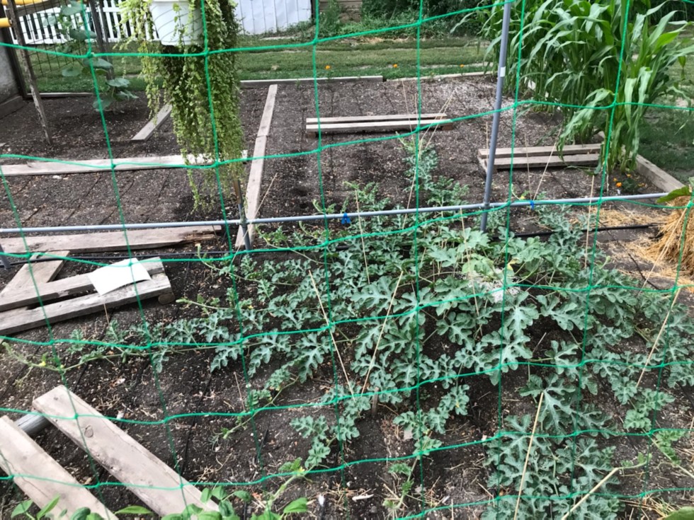 A little late to the party this year, but I am still giving things a try. Here is my watermelon. I lost the marker when she was an infant, so don't know for sure her lineage. Started seeds on April 14 and put her out into heated cloche with soil heating cables. She now takes up well over 150 sq ft and is starting to put out flowers, both male and female. I am going to let mother nature do the pollinating and I will do the sorting/pruning later. Brought in a big Indian mint plant to help draw in pollinators. The City here sprays the town for mosquitos using Government grant money to pay for it all, so pollinators here are at a very low density. I also planted extra flowers around the patch for pollinators.