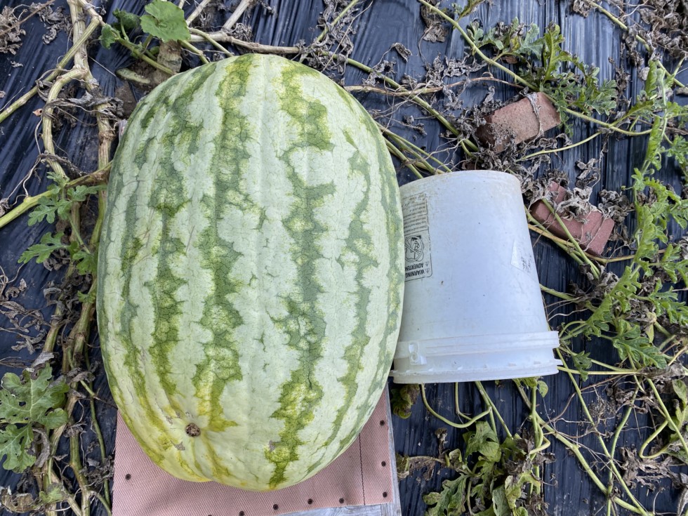 273 Williams one last shot of it. The scar is from a nosy raccoon that ran his paw over it when it was ten days old. He did it to one other melon in the patch