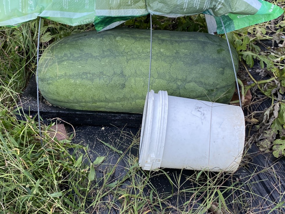 This might be the most impressive melon in the patch. It is an f2 hybrid seed that is a tom Watson crossed with a carolina cross Lots of length with this melon. Not enough girth. I am still excited to get it weighed. Thank you Lloyd bright for the seed. Lloyd has been making some really incredible novel crosses.