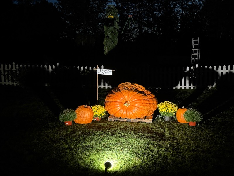 Our neighbors like to see the display lit up at night and then closer to Halloween we will carve them and light them with 100 watt light bulbs.