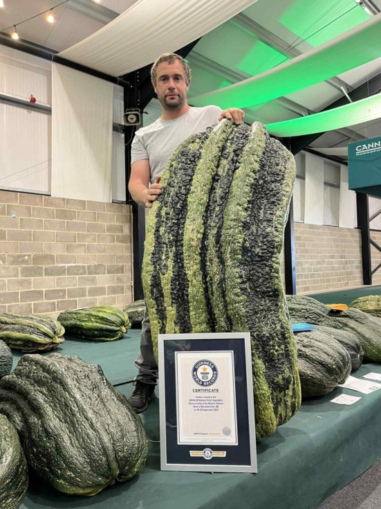 A couple of weeks ago before it split on me I asked Sebastian if GWR would recognise a new long marrow record as at 63 inches long I was fairly sure I had the longest marrow ever grown on my hands so why not. Unfortunately the marrow went down to a stem split so I thought no more about it so I was surprised when I was informed that my marrow was verified as being the WR for the longest.