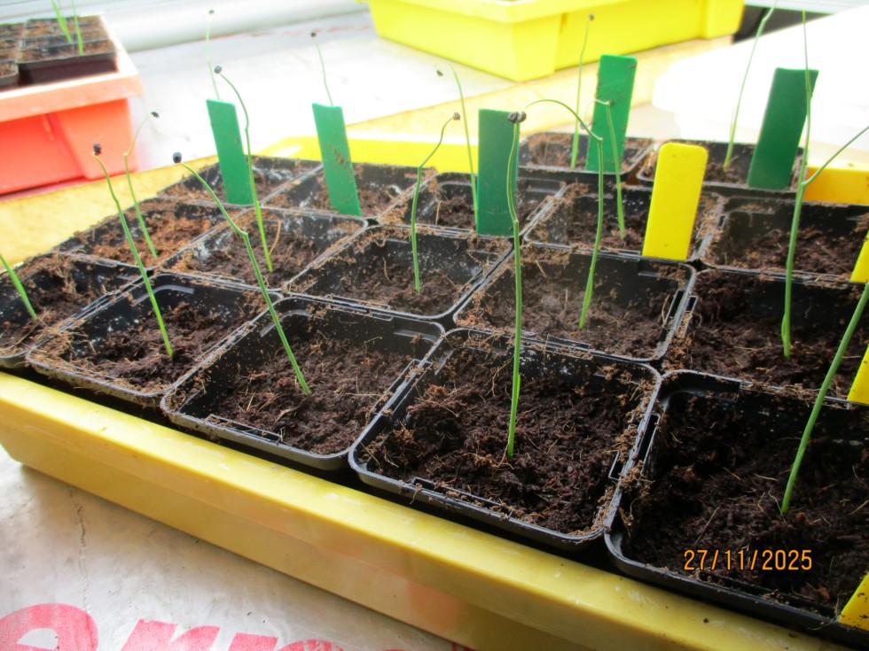 Pricked out my Onions yesterday into 2.5 inch pots, most showing first true leaf, out of the propagator still under 24hr lighting.