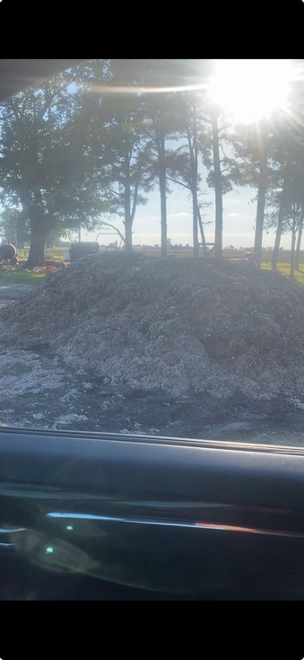 10-10-2025 Compost,I have been playing with compost for about 6 years, the stew will look a little different from year to year but I use pretty much the same stuff year in and out. The research I put in to maybe growing a giant pumpkin in 2026 made me think I should step it up.I started with 30 yards of cotton gin trash, 6000 lb. of rice hulls with broken rice pieces mixed in(rice hulls are packed full of Silica)15 yards off leaves, 10 yards of dried soybean hulls and around 10 yards of wood chips. I don't know how much coffee grounds I added but quiet a bit, guessing I added 200 lb. of whole soybeans, probably a ton of cow manure. I know this was not all I added but its the majority of it. By the way I did build the pile in a windrow it started about 6 feet high. Just add water and stir watch it cook. Rice Hulls and cotton gin trash are both hydrophobic did I mention add add add water. I will put a pic of the gin trash I would guess a few of you guys haven't been around it.
