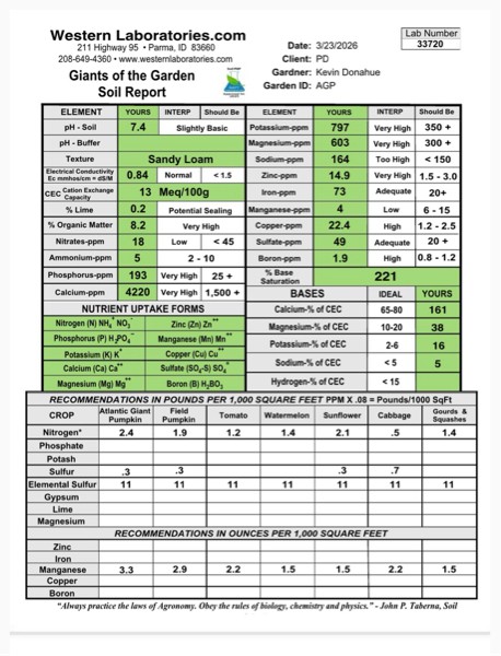 Soil test is back. This is the flowerbed patch. The soil in here was hot when it was put in and is still loaded.