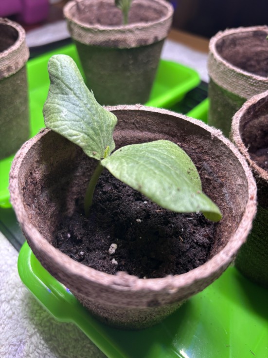 We have our first true leaf in the making! Today is day 10 since I planted the seeds and we're making good progress! I'm amazed how much growth they have in just one day. Only one of our plants seems to be a dud, the other four are progressing relatively nicely. The plan was to transplant them this weekend but I may end up giving them a few extra days since I'm not sure they'll be ready after only two weeks. I also need to re-till the pumpkin patch before transplanting. Some grass patches have sprouted up and one of our pups decided to take a whiz on the exact area I'm planning to put one of my hills!